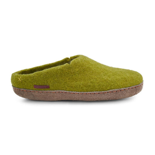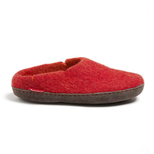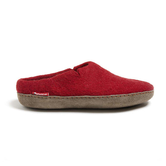 The perfect house shoe, this classic wool felt slipper is easy to slip on and off. Available in a variety of colours and with leather or rubber soles.